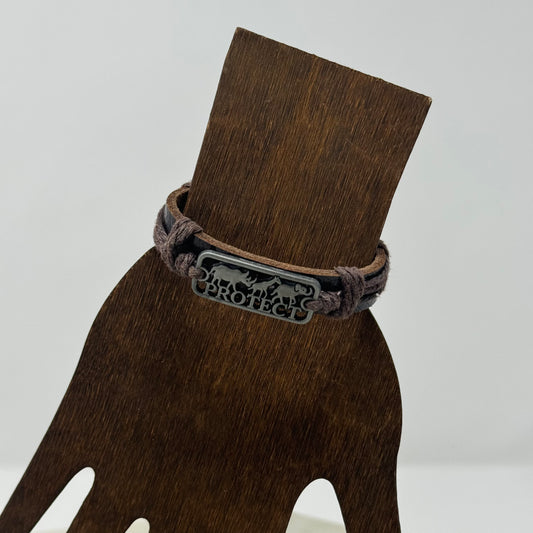 Bracelet Boho Brown Leather Bangle 7 Inch Protect African Safari Charm