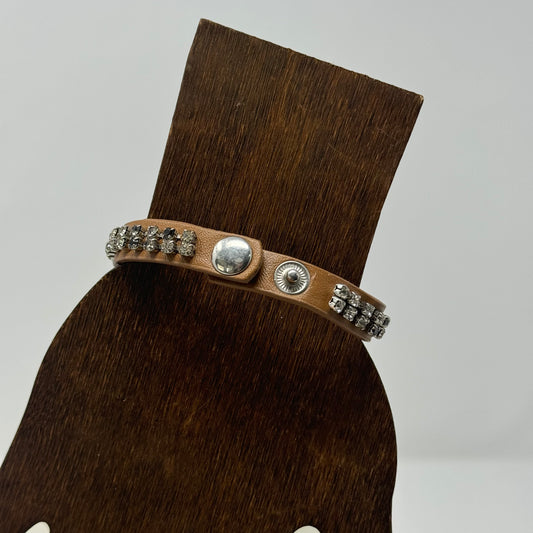 Bracelet Boho Southwest Brown Leather Rhinestone Bangle 7.75 Inch
