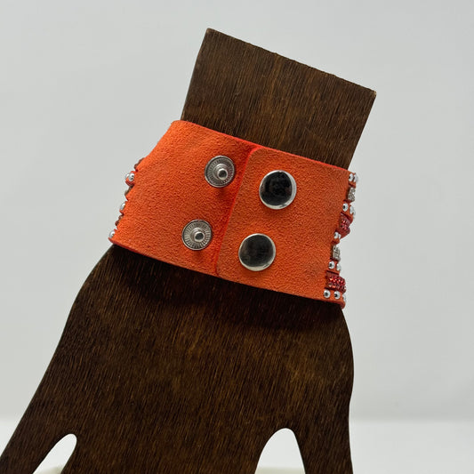 Bracelet Boho Southwest Layer Orange Faux Leather Rhinestone Cuff 9.25 in