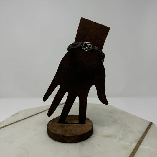 Bracelet Boho Brown Leather Bangle 7 Inch Paw Print Charm