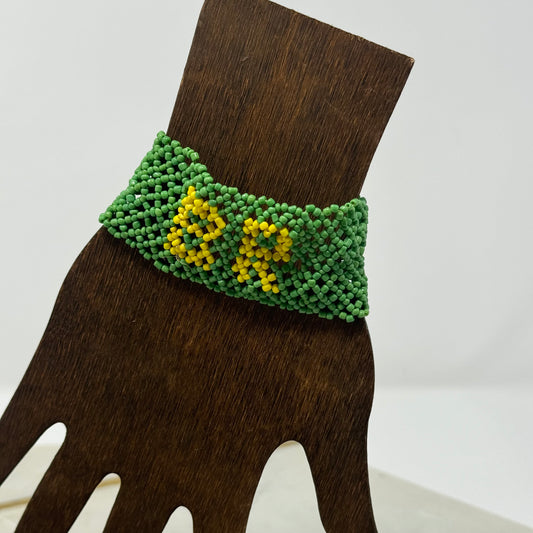 Bracelet Multi-Layer Yellow & Green Seed Bead Cuff 6.25 in Fashion Jewelry