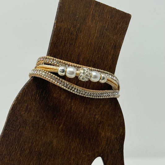 Bracelet Boho Southwest Multi-Layer Leather Rhinestone Cuff 7.5 in