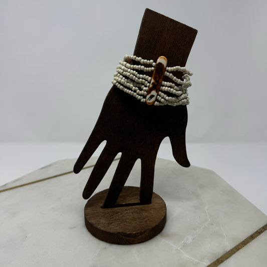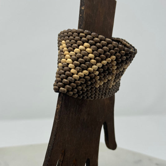 Bracelet Boho Southwest Beaded Cuff Wood Multi-Layer 7.75 in