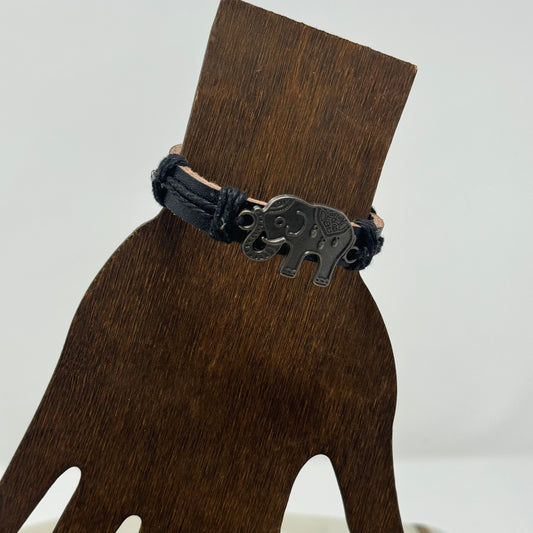Bracelet Boho Brown Leather Bangle 7 Inch Protect Elephant Safari Charm