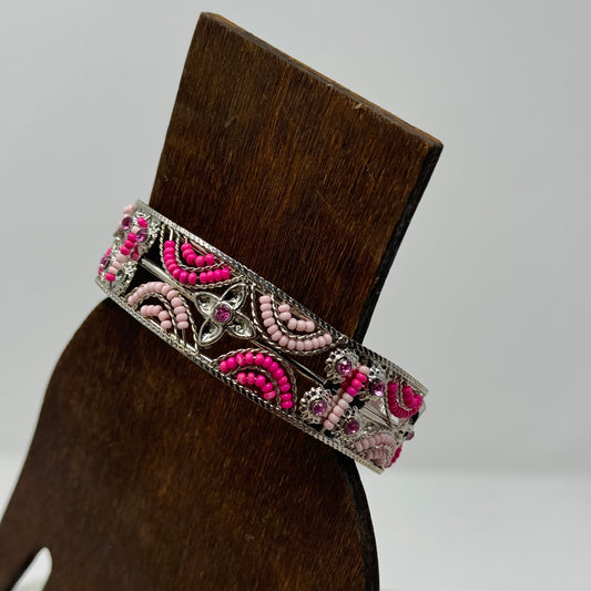 Elegant Pink Beaded Bracelet with Floral Design - Trendy Handmade Boho Fashion Jewelry