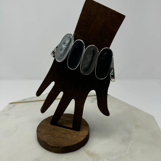 Stunning Vintage Silver Tone Bracelet with Modern Oval Black & Gray Accents - Trendy Jewelry