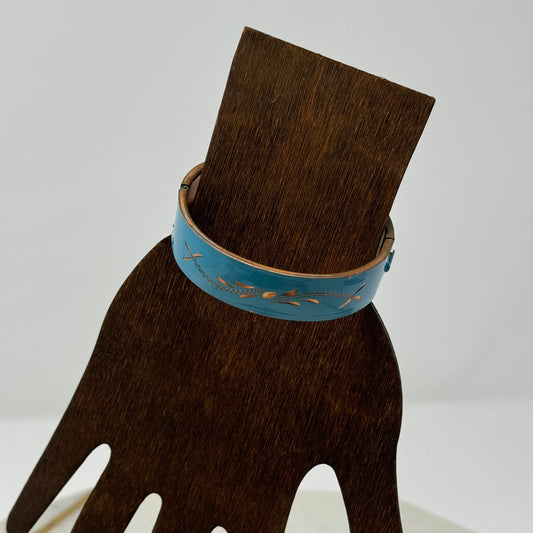 Vintage Blue Bangle Bracelet with Gold Accents - Mid-Century Modern, Floral Design, Retro Statement Jewelry