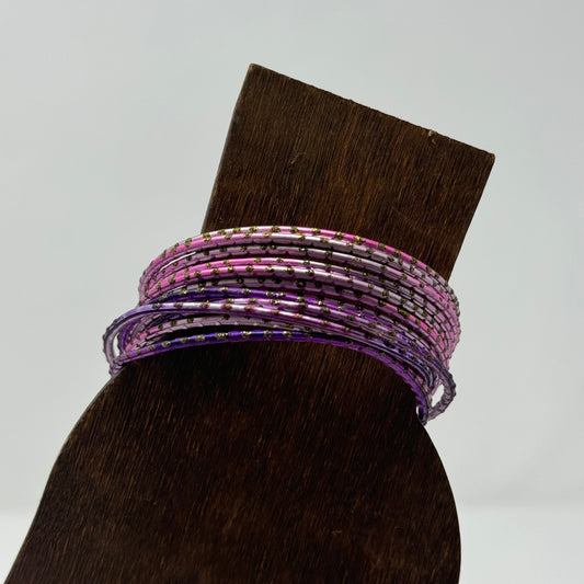 Elegant Purple & Pink Stackable Bangles 12 Trendy Glitter Fashion Jewelry Bracelet Set