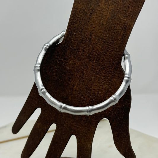 Trendy Silver Bamboo Style Bangle Bracelet - Modern Minimalist Fashion Jewelry