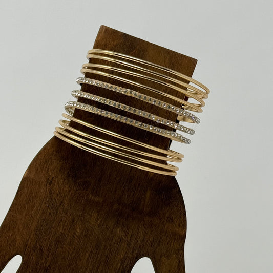 Gold Multi-Layer Rhinestone Cuff Bracelet