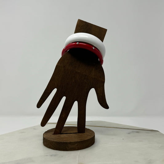 Red & White Rhinestone Bangle Bracelet set of 2