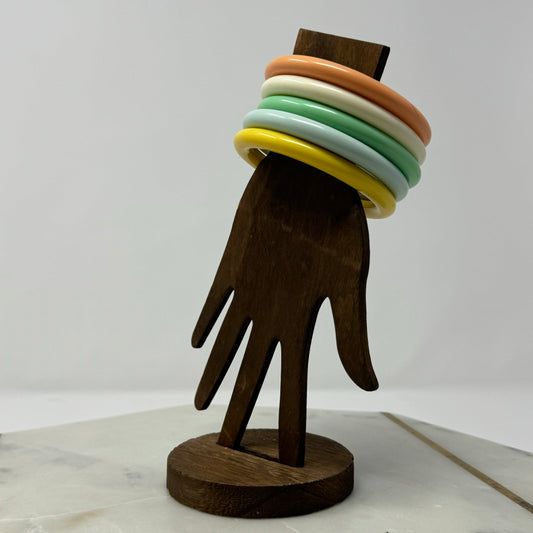Pink Shell Inlay Wood Bangle Bracelet Set of 2