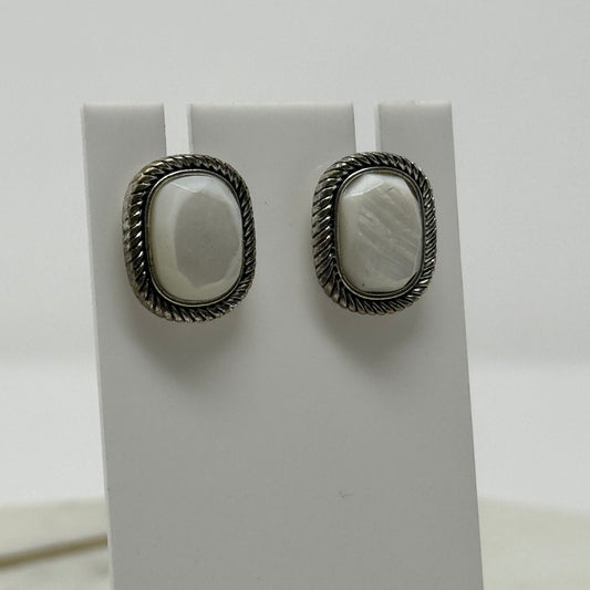 Boho White Shimmer Stone Tribal Silver Post Earrings
