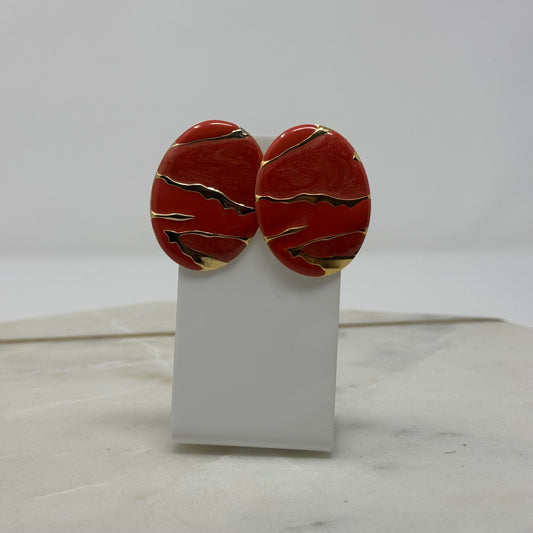 Vintage Red Enamel & Gold Accent Post Earrings
