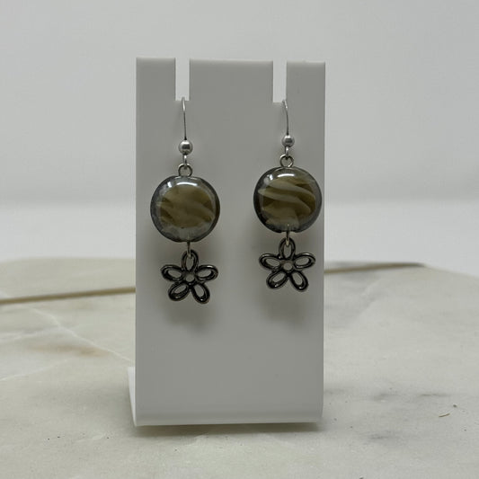 Glass Bead Dangle Flower Accent Hook Earrings