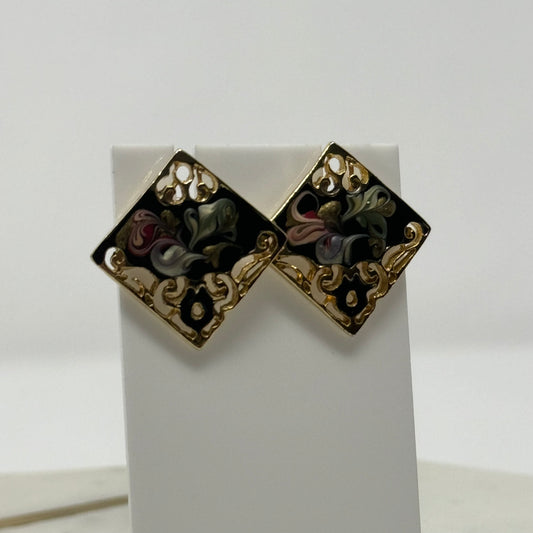 Vintage Intricate Square Enamel Stud Earrings
