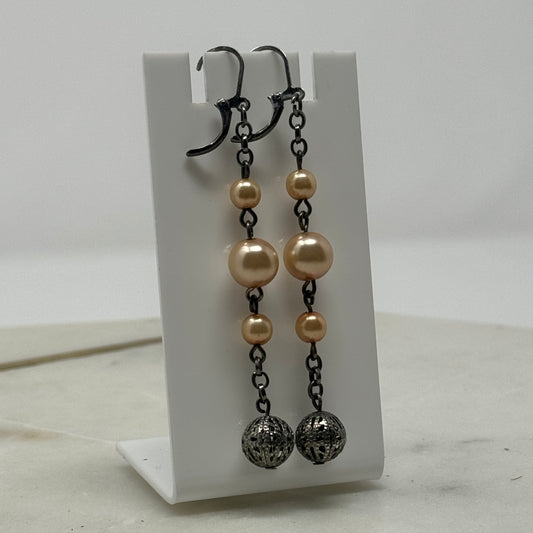Peach Pearl Dangle Statement Leverback Earrings