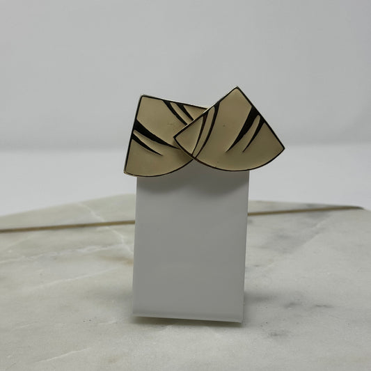 Vintage Triangle Cream Enamel Gold Accent Earrings