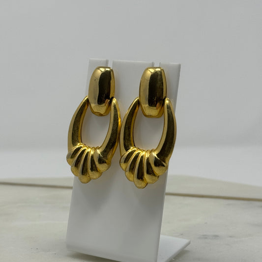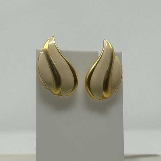 Vintage Gold & Cream Enamel Teardrop Earrings