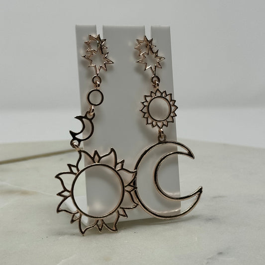 Boho Rose Gold Sun & Moon Tribal Dangle Earrings
