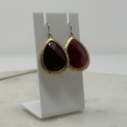 Boho Deep Red Faceted Teardrop Dangle Earrings