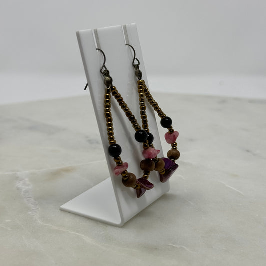 Rustic Boho Beaded Shell Dangle Leverback Earrings