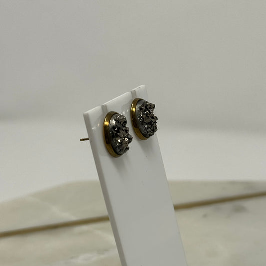 Sparkle Gun Metal Druzy Rock Crystal Stud Earrings