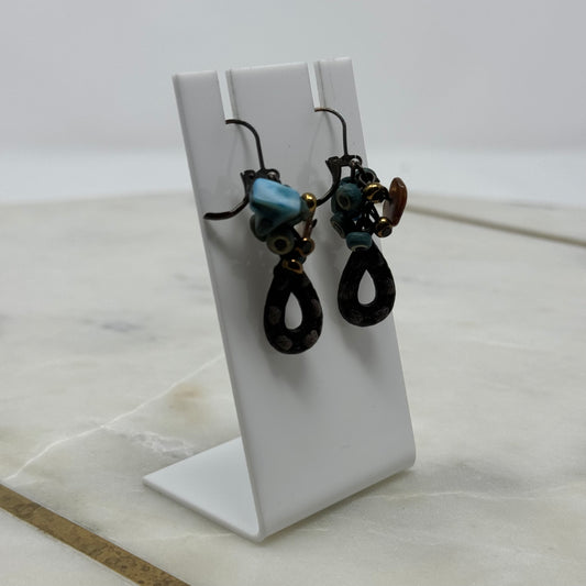 Blue Beaded Dangle Multi Layer Hoop Earrings