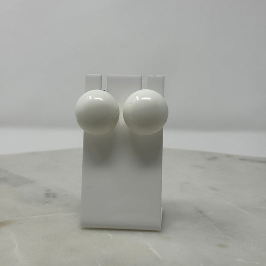 Rounded Retro White Clip-On Earrings