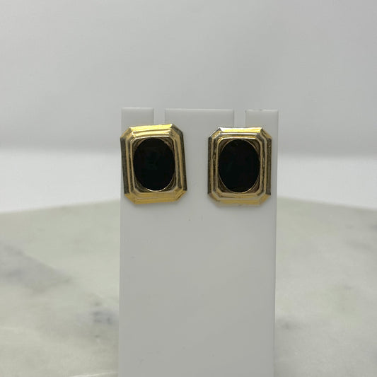 Vintage Black & Gold Beveled Rectangle Clip-On Earrings