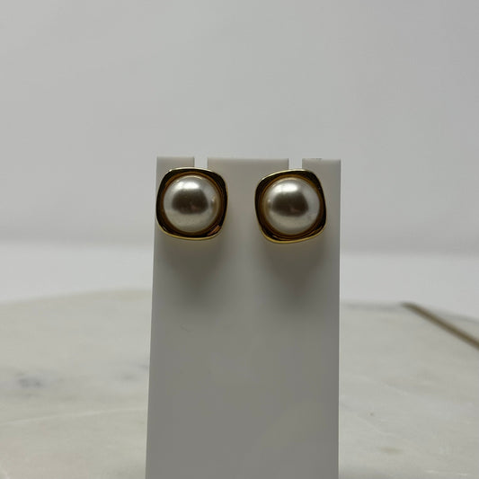Vintage 1990’s Gold Square Faux Pearl Post Earrings