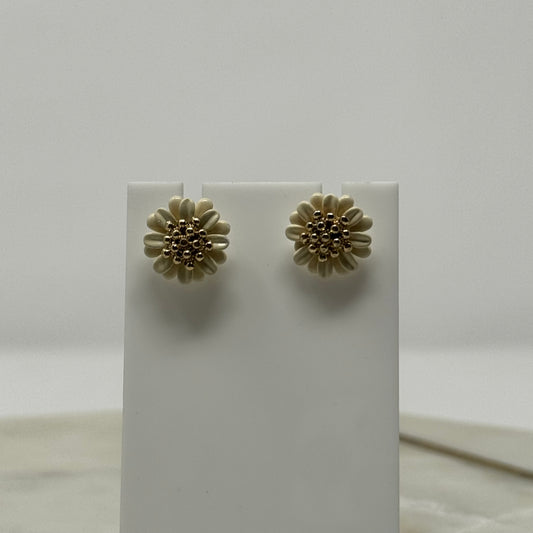 Daisy White & Gold Enamel Stud Earrings