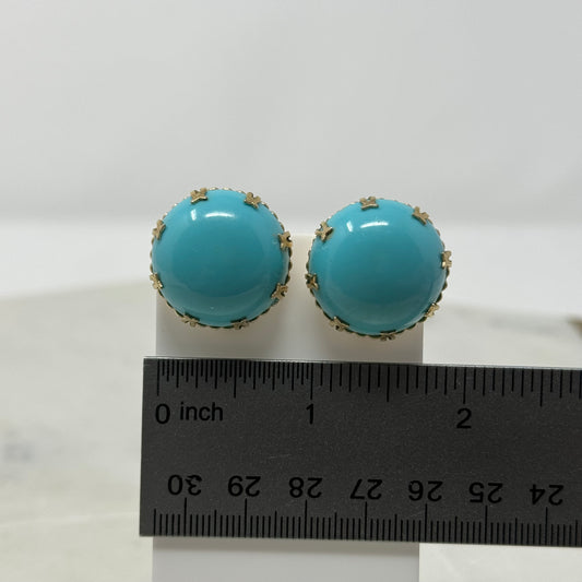 Vintage Classy Round Gold & Teal Clip-On Earrings