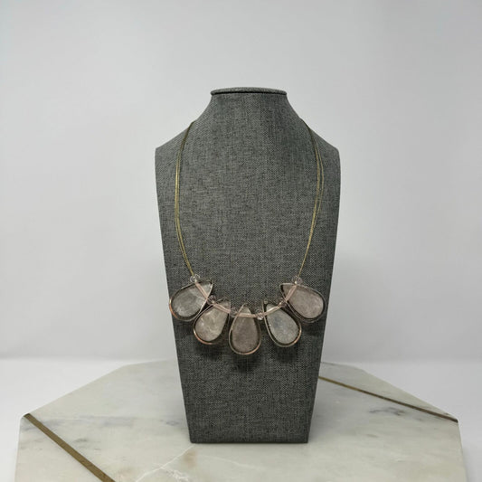 Pink Teardrop Statement Necklace Gold Wire Elegant Minimal Delicate Chic 18”