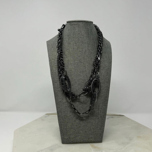 Premier Designs Black Layered Chain Statement Necklace Bold Edgy Sleek Modern 40”