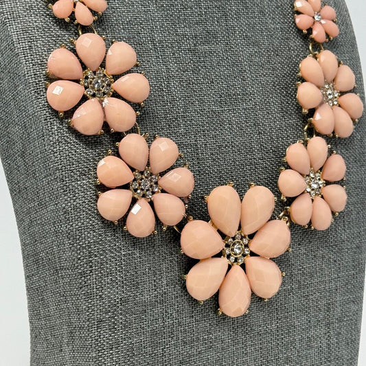 Pink Flower Statement Necklace Faceted Petal Rhinestone Elegant 16”