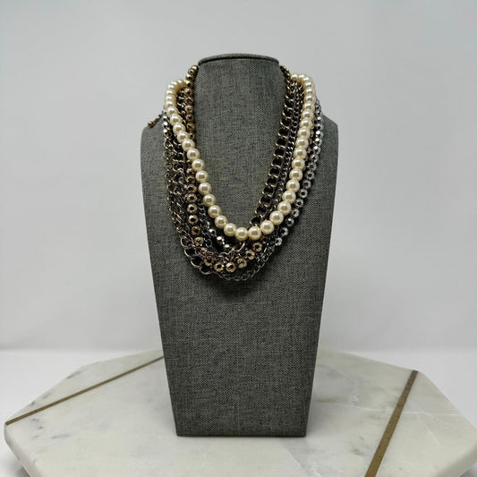 Premier Designs Pearl Chain Layer Necklace Shimmer Beaded Accents Rustic Bold