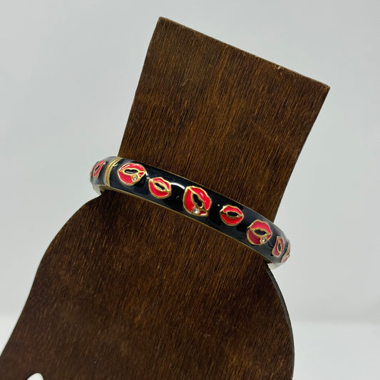 Betsy Johnson Black Enamel Bracelet with Red Lip Design Statement Jewelry