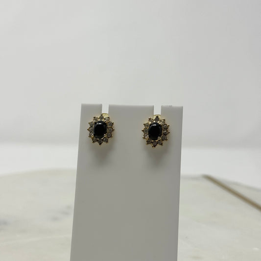 Black & Gold Real Gem Stud Earrings