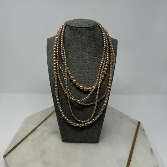 Necklace Statement Beaded Strands Faux Pearl Beige 18 in Costume Jewelry