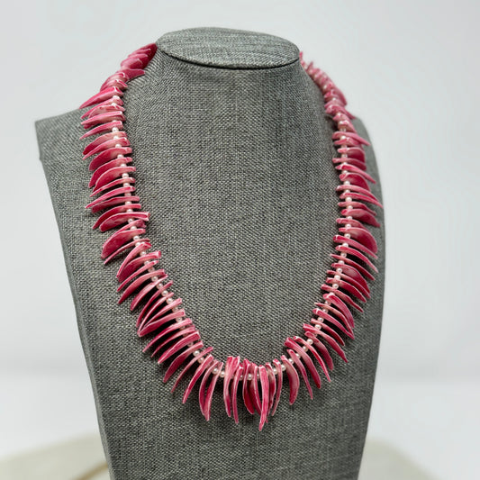 Unique Pink Shell Spike Necklace with Pearl Accents - Handmade Boho Statement Jewelry