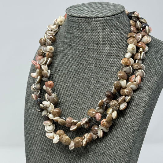 Boho Beach Shell Necklace with Cowrie & Cone Shells - Handmade Multi-Strand Statement Jewelry