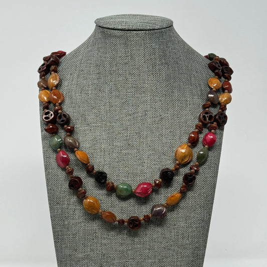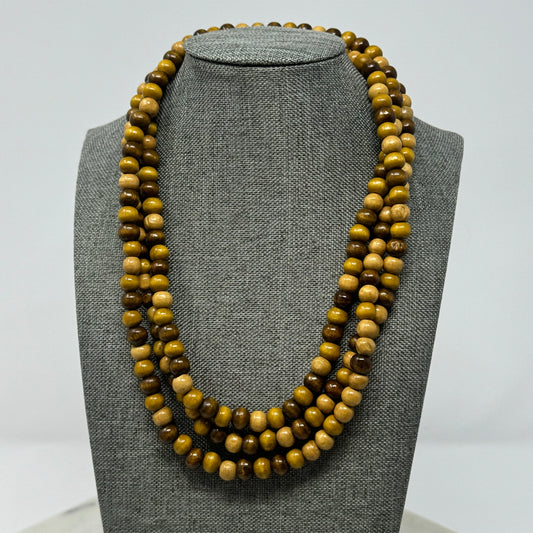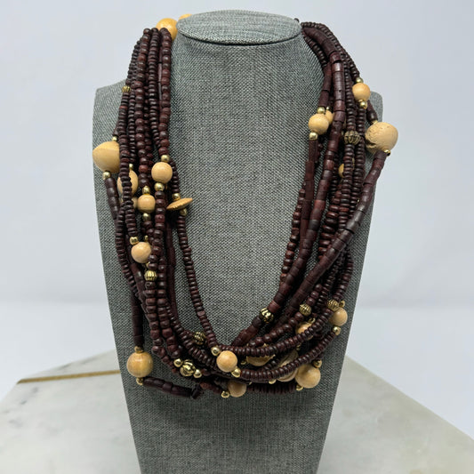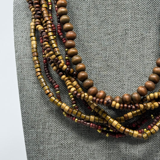Wooden Bead Statement Necklace Earth Tones Artisan Handmade Multi-Strand Boho Jewelry