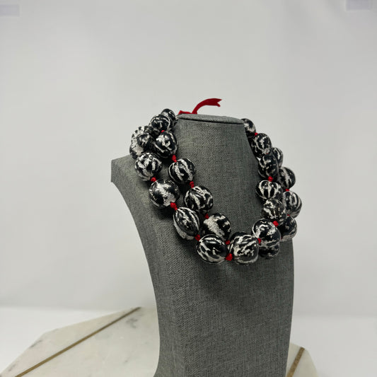 Artisan Hand-carved Bead Necklace - Boho Multi-Colored Statement Jewelry Handmade