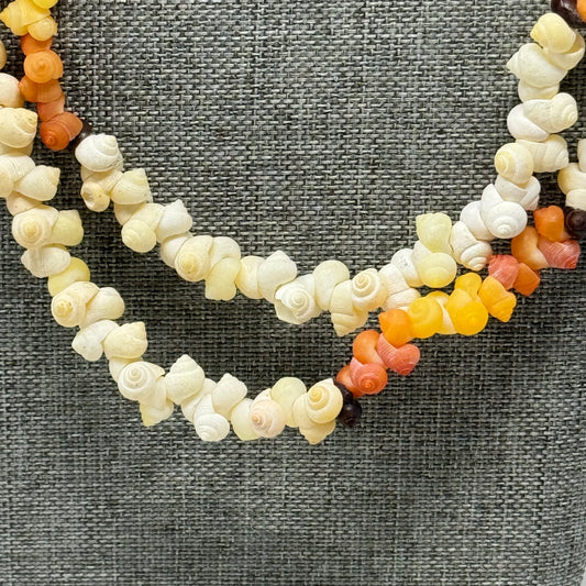 Boho Multi-Strand Shell Necklace Natural & Orange Tones Handmade Beach Statement Jewelry