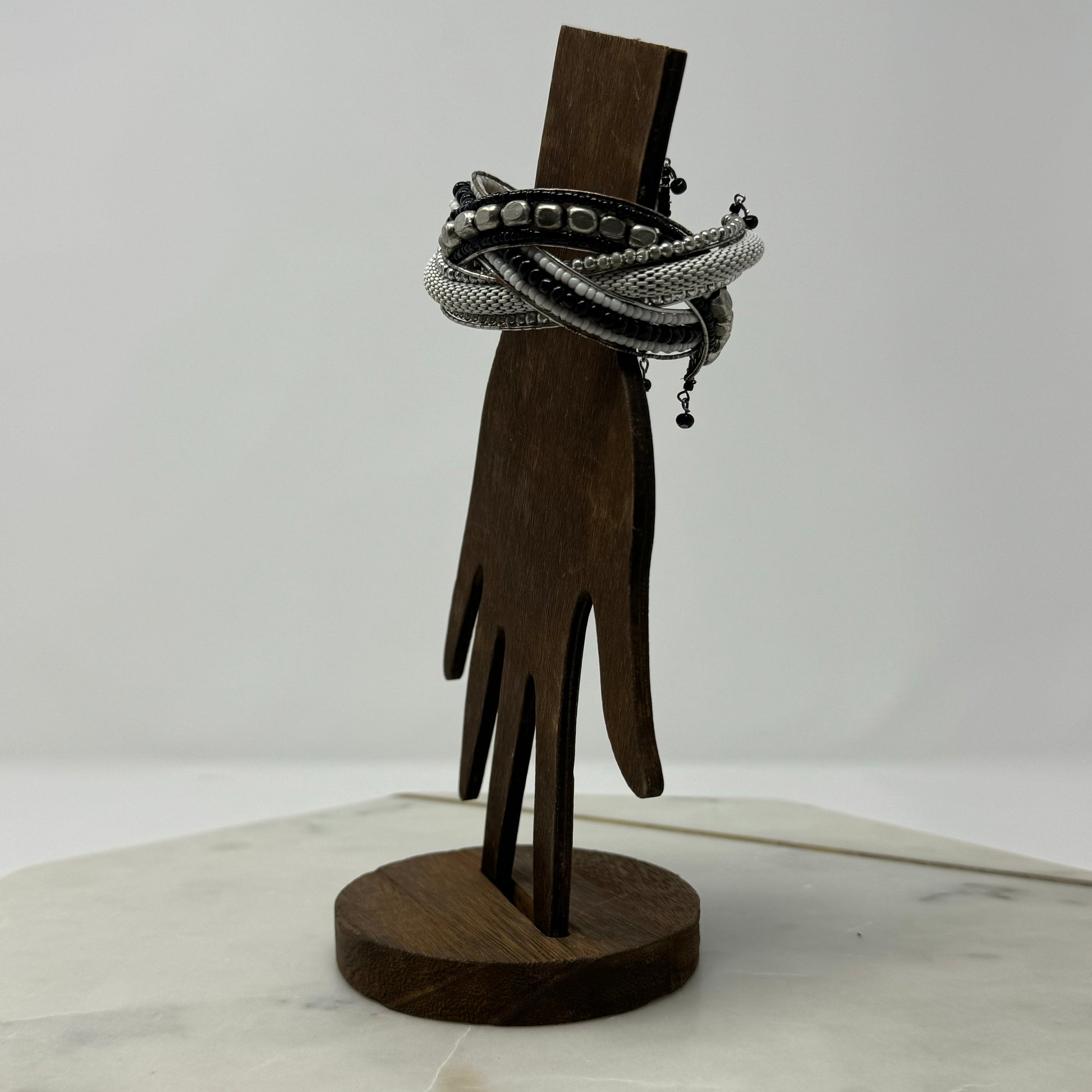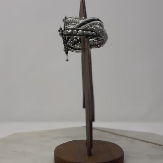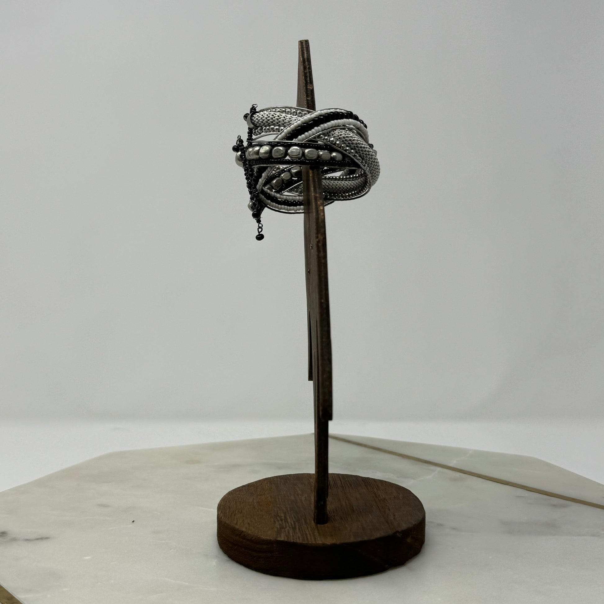 Braided Black & Silver Beaded Cuff Bracelet