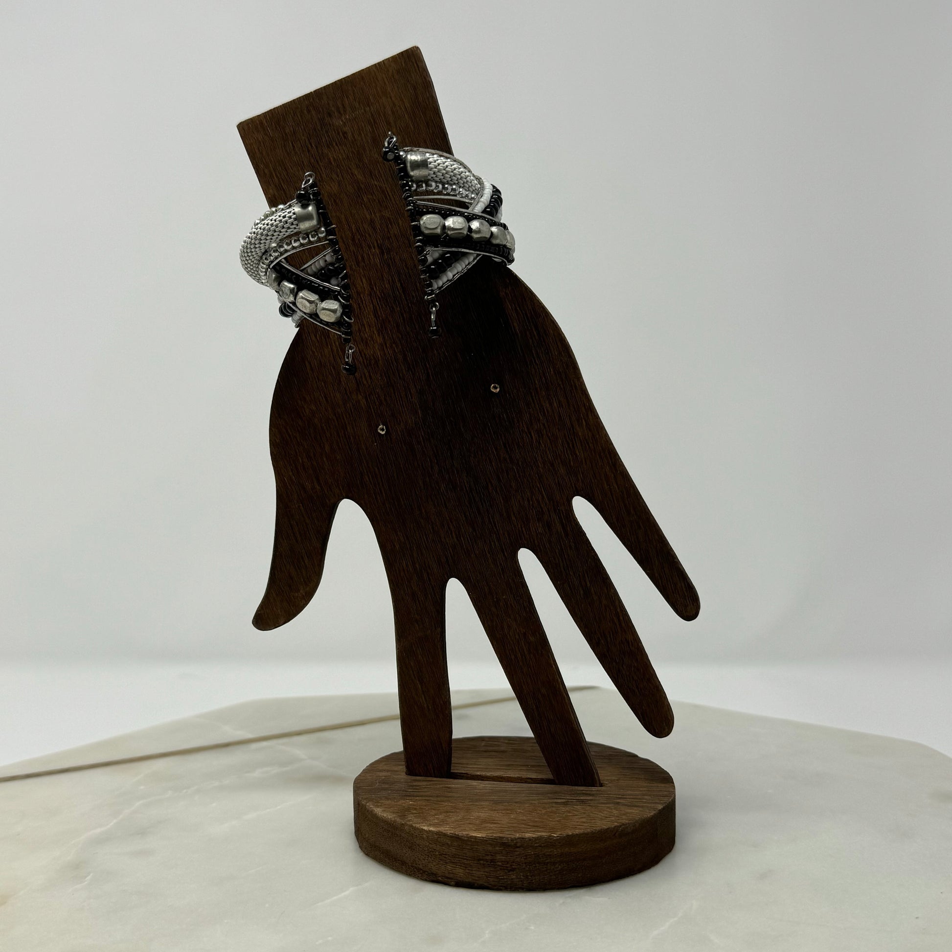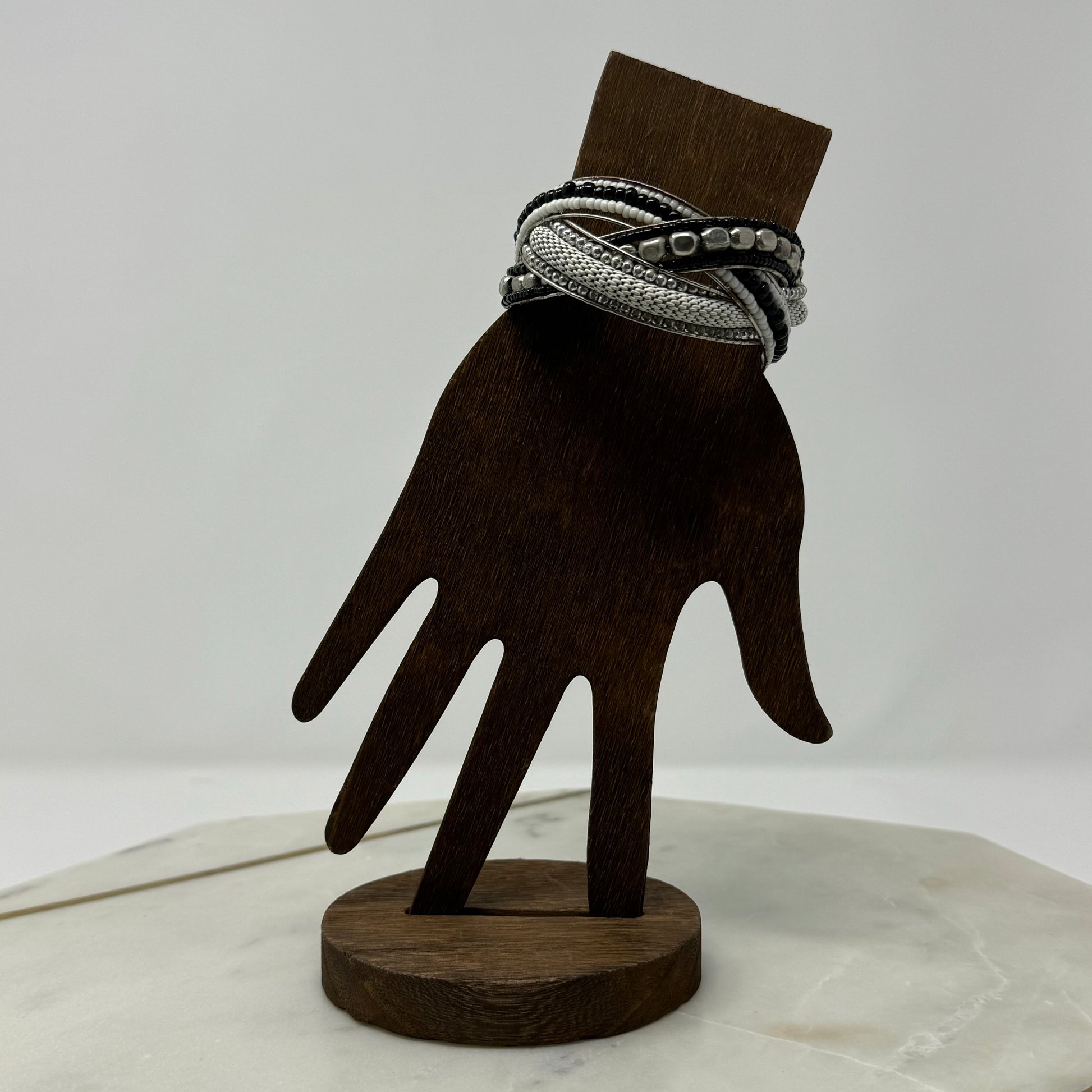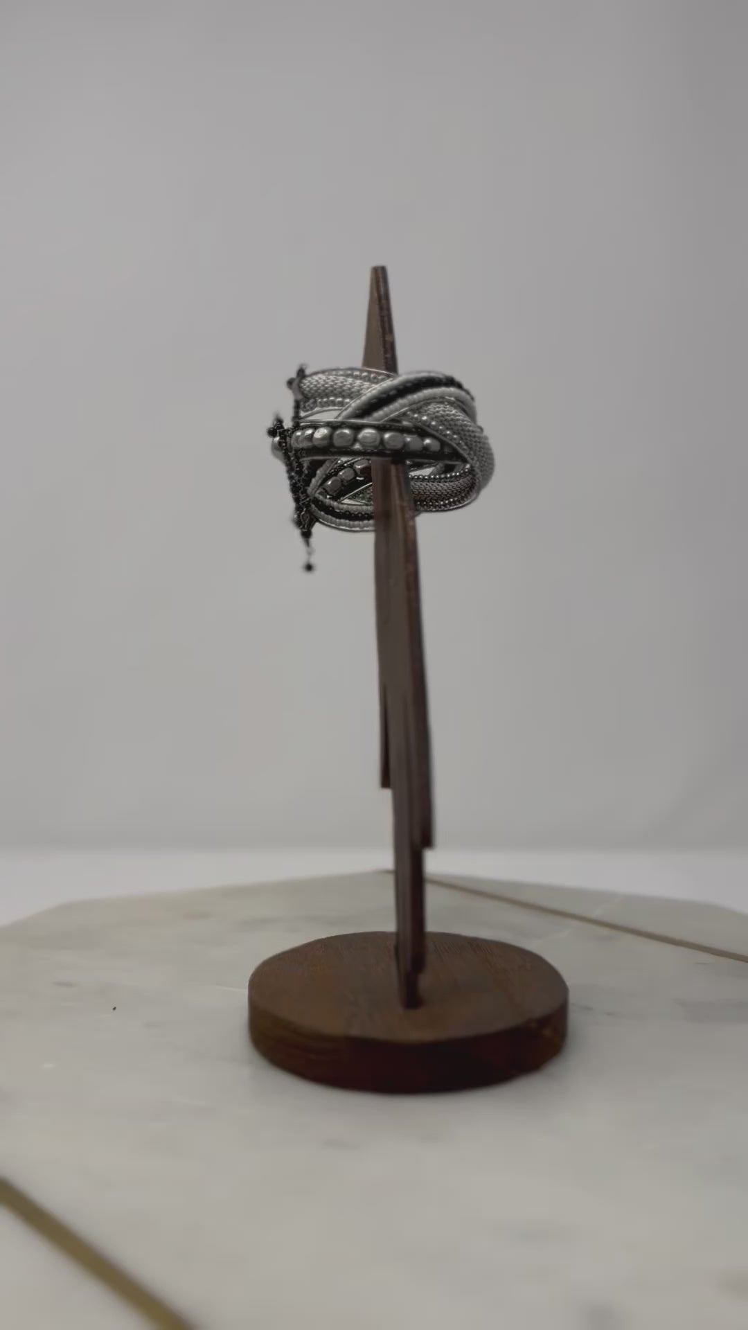 Braided Black & Silver Beaded Cuff Bracelet