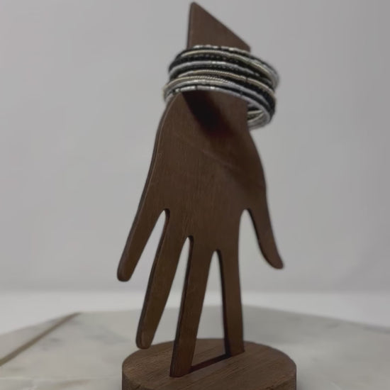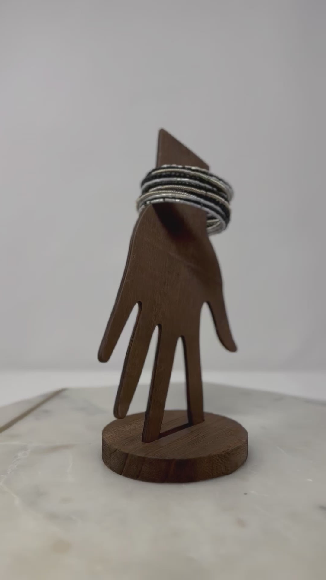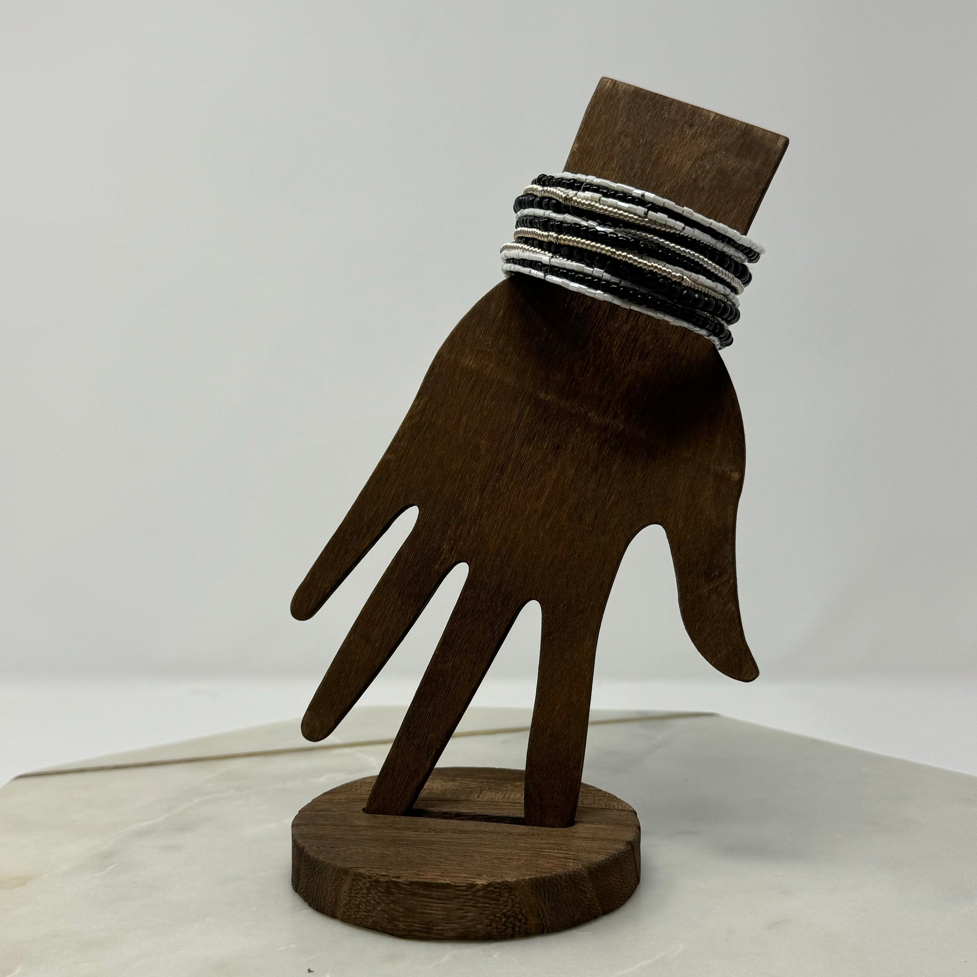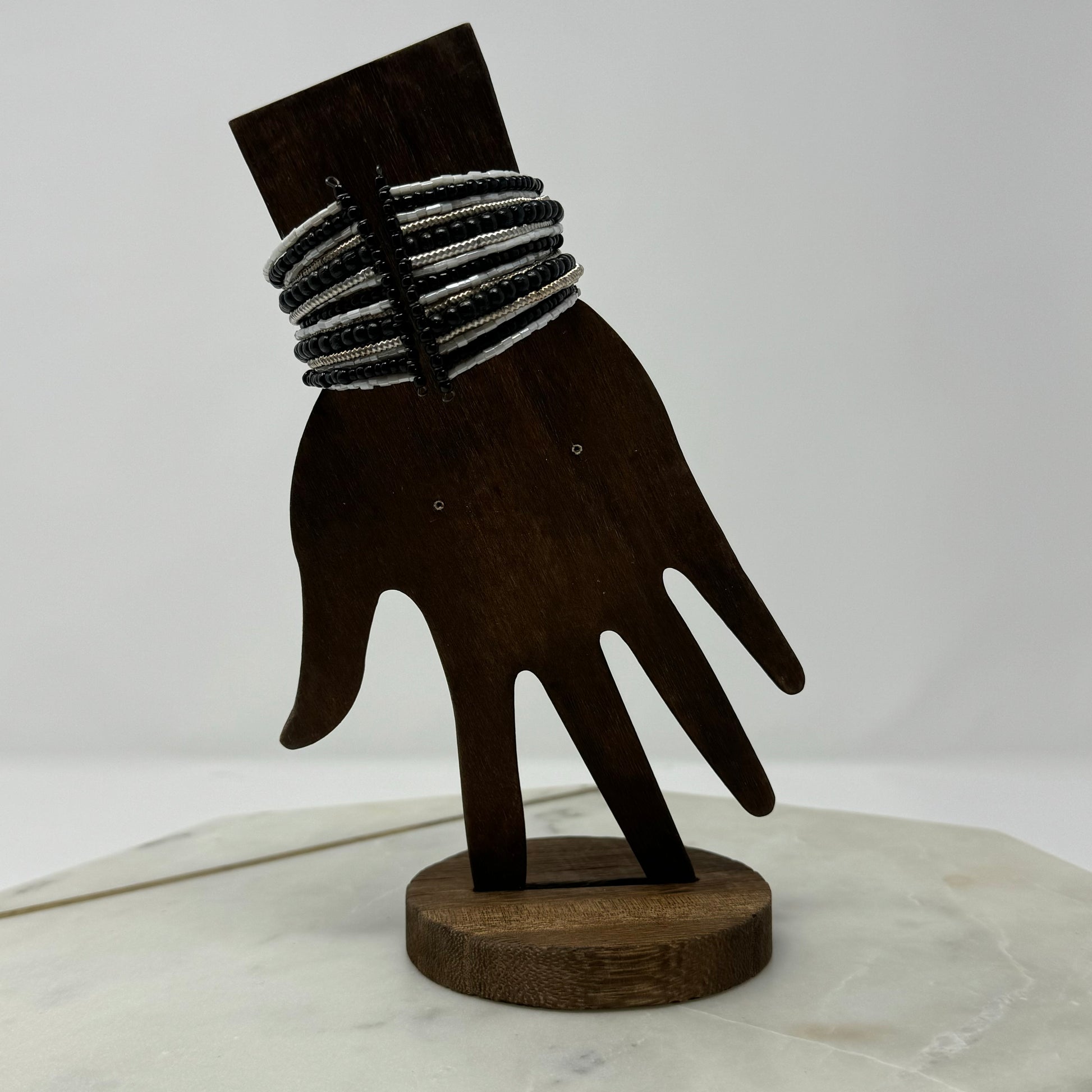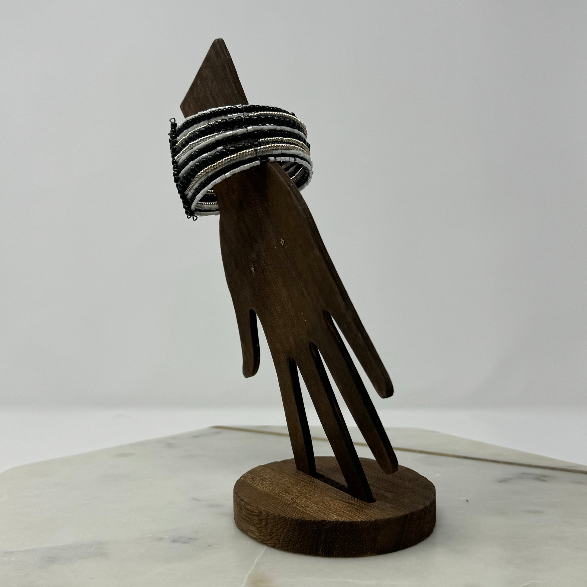 Add a touch of sparkle to your outfit with our Black & Silver Beaded Cuff Bracelet. Made with delicate silver and black beads, this bracelet is the perfect accessory for any occasion. Elevate your look and let your unique style shine with this playful and fun addition to your jewelry collection!