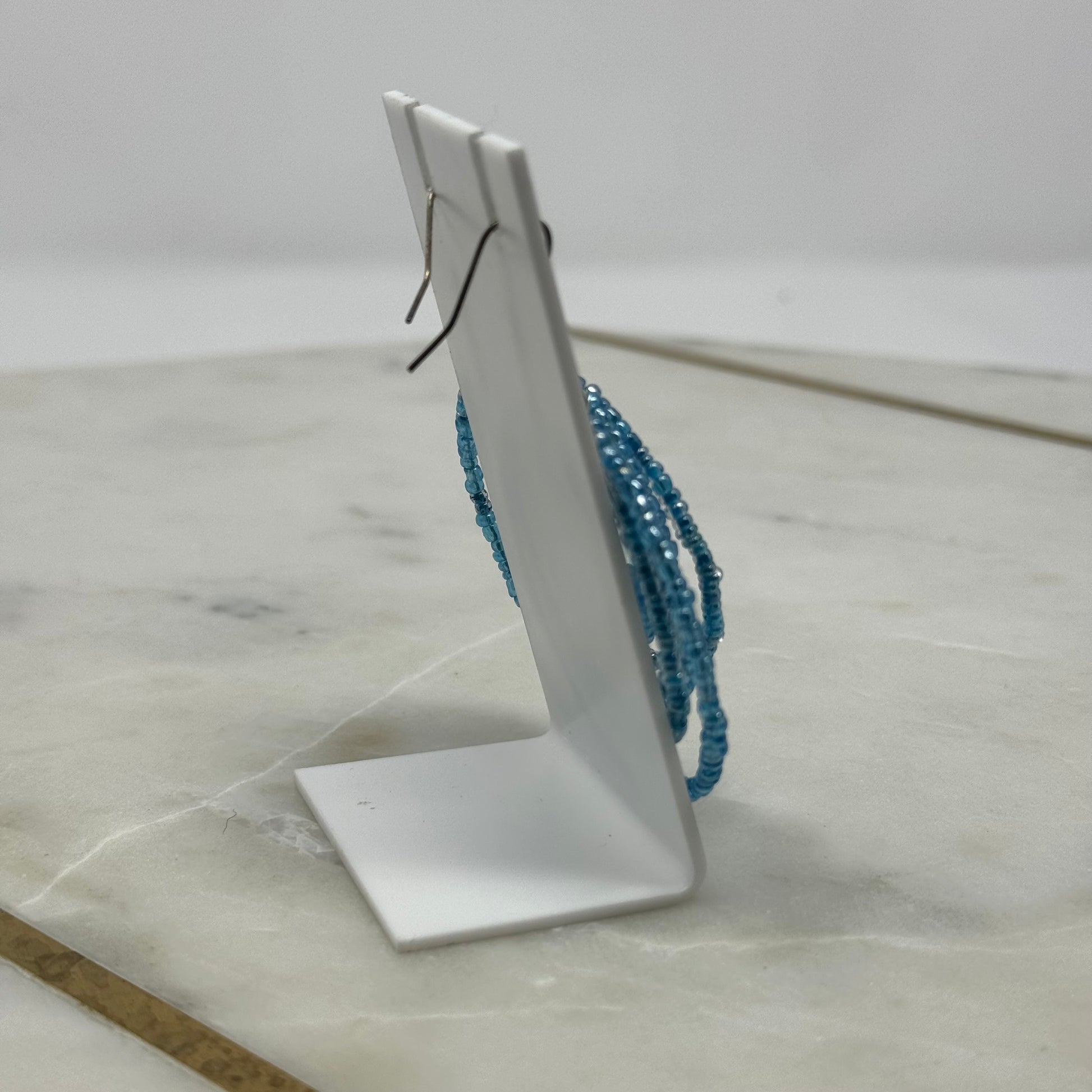 Add a pop of boho chic to any outfit with our Blue Beaded Dangle Multi Layer Hoop Earrings. These simple yet stylish earrings are perfect for adding a touch of color and texture to your look. Designed with multiple layers of blue beads, these earrings are versatile enough for any occasion.
