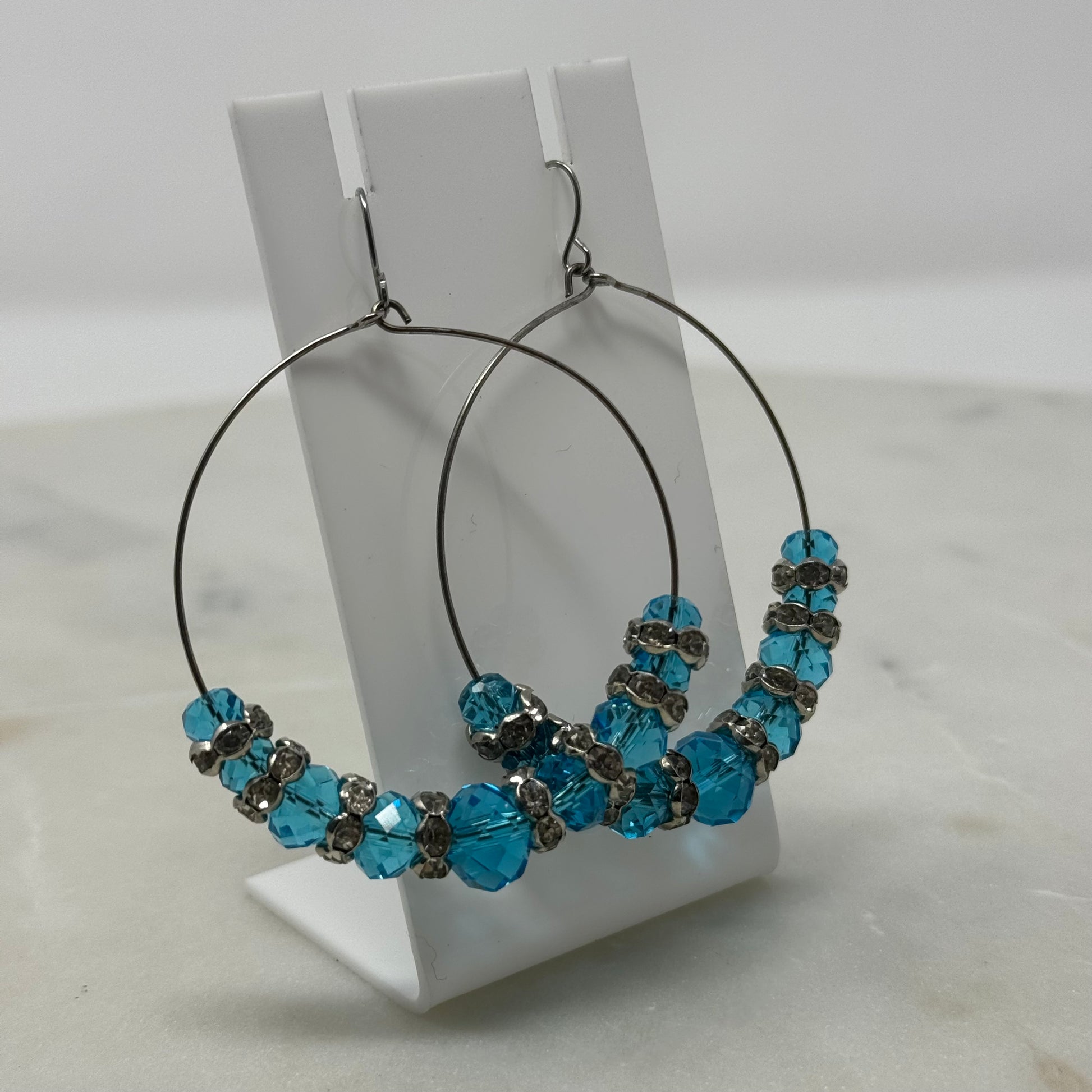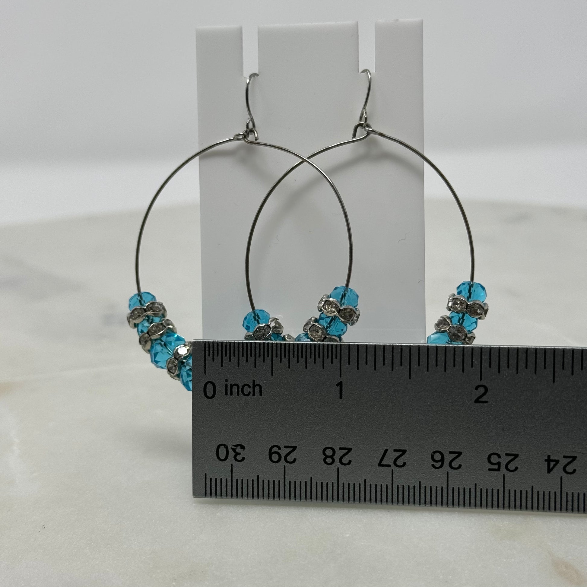 Blue Beaded Sparkle Dangle Hoop Earrings